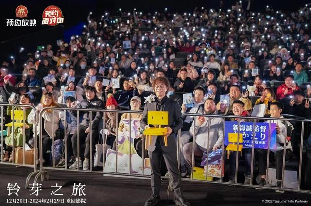 12月20日,中影预约放映在上海举办“新海诚《铃芽之旅》预约面对面”特别放映活动,数百名观众集体观看了经典动画影片《铃芽之旅》之后,导演新海诚映后惊喜亮相,新海诚感叹道,“谢谢大家跟我说欢迎回来!我特别的高兴!我回来了!请大家多多关照!”