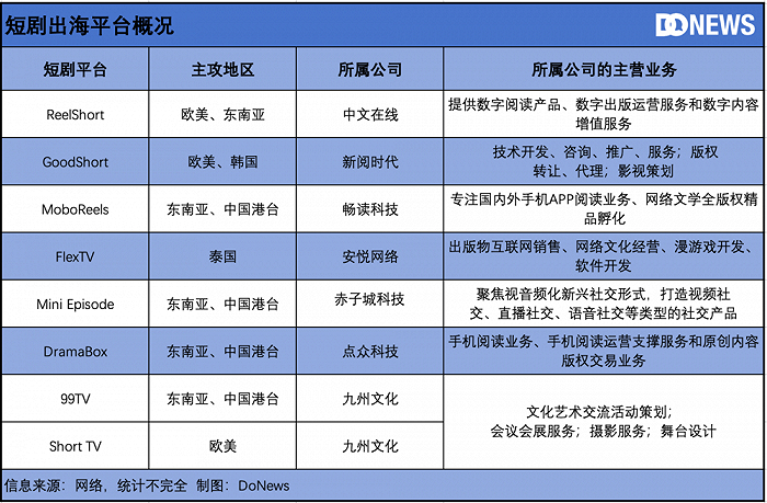 点众科技在今年4月上线的DramaBox和九州文化今年下半年先后推出的99TV、Short TV,还有今年7月畅读科技推出的MoboReels和与赤子城科技推出的Mini Episode,也具备一定影响力。
