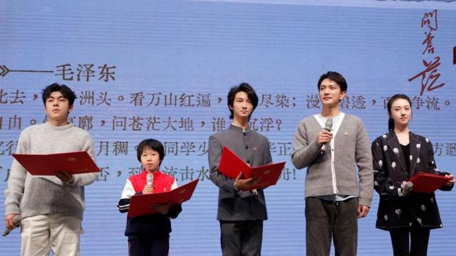 “怅寥廓,问苍茫大地,谁主沉浮?”最终,在全场师生《沁园春·长沙》的齐声朗诵中,交流会迎来了尾声。热血飞扬的朗诵声在厅内回荡,以影视作品为媒介,从艺术走回现实,承袭先辈革命力量,续唱当代青春长歌,红色的炬火在这一刻进行了一场跨越时代的交递。