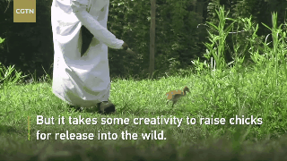 在四川省卧龙自然保护区,饲养员在抚养熊猫幼崽时,就穿上了熊猫服装,把熊猫的粪便和尿液洒在身上。专家提到,这是为了掩盖人类的气味,减轻动物的压力,让熊猫宝宝觉得自己真的是“熊猫家长”抚养长大的。以后放归野外时才会和人保持距离,避免产生不必要的冲突和危险。