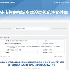 《汕头市住房和城乡建设局商品房预售款监督管理暂行办法》印发