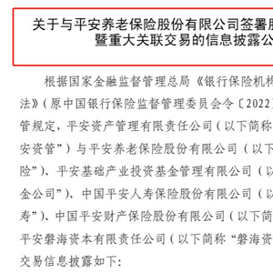 12月21日,平安资产管理有限责任公司(以下简称“平安资管”)发布关于与平安养老保险股份有限公司(以下简称“平安养老”)签署股权转让协议暨重大关联交易的信息披露公告。