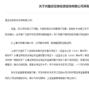 盈亚证券投资咨询被责令改正
