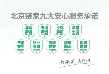 2022年北京链家将安心服务承诺升级为“九大安心服务承诺”,聚焦发生频次更高、风险更大的核心痛点,让服务更专注,让保障更完善。“九大安心服务承诺”包含“交易不成 佣金全退”“不吃差价 吃一赔十”“房屋漏水 保固补偿”“税费精算 差额补偿”等。