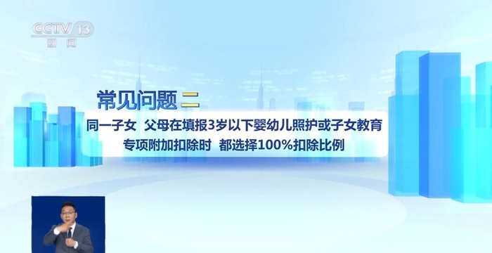 常见问题二:同一子女,父母在填报3岁以下婴幼儿照护或子女教育专项附加扣除时,都选择100%扣除比例。