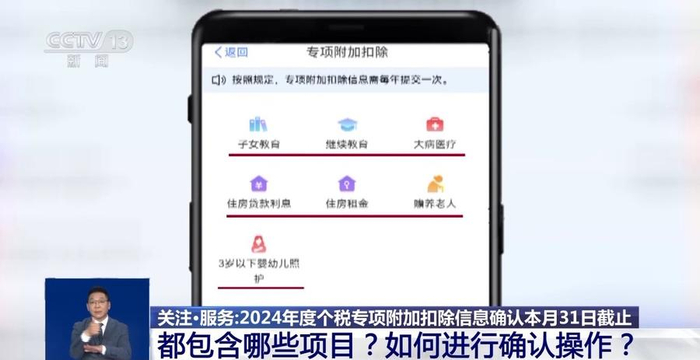 2024年度个人所得税专项附加扣除信息确认已于12月1日开始,将于12月31日截止。20日,国家税务总局也在公众号上提示相关居民个人,抓紧在规定时间内通过个人所得税App进行信息确认。个人所得税专项附加扣除都包含哪些项目?又该如何进行信息确认操作?一起来了解。