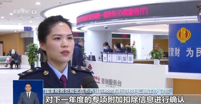 国家税务总局北京市西城区税务局所得税科三级主办 徐姣:我们每年都需要在12月对下一年度的专项附加扣除信息进行确认,这样就可以保证我们在来年1月可以及时足额享受到专项附加扣除政策。