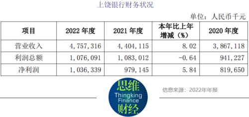 从上饶银行近几年经营状况来看,该行资产规模不断扩大,营业收入水平稳步上升。年报显示,2020年至2022年,该行资产总额分别为1605.52亿元、1921.04亿元、2155.01亿元,分别实现营收38.67亿元、44.04亿元、47.57亿元,净利润分别为8.20亿元、9.79亿元、10.36亿元。