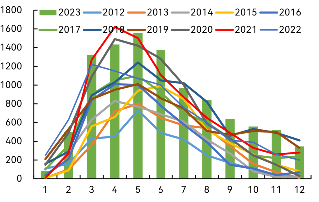 巴西大豆已开始进入关键生长期,是需水量最大的时候,2023年12月至2024年2月降雨对于产量起着至关重要的作用。另外,近期美豆周度销售也处于高位,美豆主力也暂时在1300美分/蒲式耳附近得到支撑,但是决定美豆运行的更多是南美新作大豆供应情况,特别是备受关注的巴西大豆。