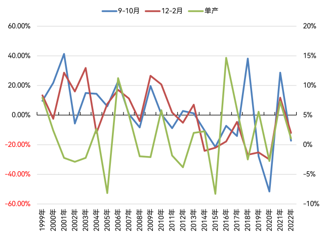 在2004/2005年度、2015/2016年度和2018/2019年度,巴西中南部(帕拉纳州、南里奥格兰德州)单产出现下降,不难发现,尽管2004年9月至11月降雨略偏多,但是2004年12月至2015年2月却遭遇偏干,最终2004/2005年度巴西南部大豆单产减少。同样,2018年9月至11月降雨也高于均值,但是2018年12月至2019年2月偏干,最终2018/2019年度巴西南部大豆单产减少。2004/2005年度和2015/2016年度本身是厄尔尼诺年,南部应该偏湿,却反季节性地出现干旱,导致反季节减产。但是反过来,降雨偏多一些,单产也并非一定增加,比如2015/2016年度。但是确定性大的是,当年12月到次年2月之间的降雨要比当年9月到11月之间的更重要,毕竟12月开始巴西大豆才进入关键生长期。再看2006/2007年度,2006年9月至11月降雨比较少,但是12月到次年2月期间,降雨恢复至均值水平以上,最终单产还是增加了。