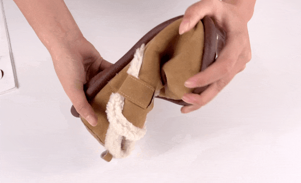 鞋内包括鞋垫都是厚绒,鞋外合成革材质透气耐磨损,一脚踩进去就像个“小暖炉”,