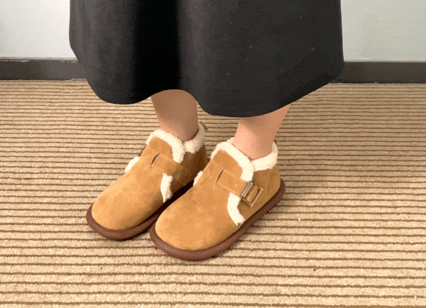 它的鞋型精致秀气,侧围扣饰+圆型鞋头+厚实绒毛,浑身散发着一种“我很实穿,也很好看”的气质。