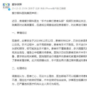 21日夜间,爱尔眼科医院集团在微博发布最新声明,表示涉事医生粗暴对待患者的行为,已严重违反医疗机构从业人员行为规范。集团已于21日下午免去贵港爱尔CEO职务,暂停院长(即手术医生)职务,两人均接受进一步调查。下一步,集团将敦促贵港爱尔深入整改,并将根据后续调查结果做进一步严肃处理。