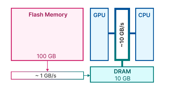 性能水平高的DRAM可以让数据处理的速度提升数百万倍,然而,弊端在于容量上。在DRAM上运行严重限制了可以运行的最大模型大小。