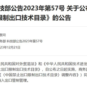 12月21日,商务部、科技部发布公布了修订后的《中国禁止出口限制出口技术目录》(下称《目录》),自公布之日起实施。该目录此前已经历2008年、2020年两次调整。