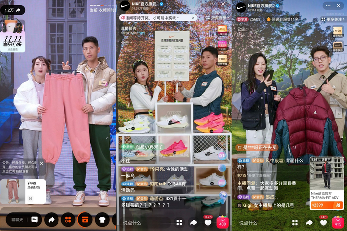 从线上表现来看,耐克不断强化品牌与消费者的情感绑定,挖掘直播、短视频等新渠道潜力。“双十一”期间,天猫“耐克会员进阶计划”再度升级,消费者可以与3D虚拟人物像“老朋友”一样叙旧,直接、深度的交互带动每位会员平均消费同比增长超30%。与此同时,耐克在内容社交和私域渠道的投入成效显著,近4000款产品通过短视频及直播呈现,全平台直播销售额同比实现双位数增长,短视频数量同比增长2.5倍。