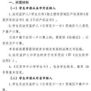 京籍:监护人持有东城区户籍、房产,从外区或外省市转入;监护人持有东城区集体户口,从外省市转入。