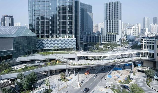 根据规划,北外滩将打造6公顷中央绿地、50公顷慢行优先区、22公顷无车区和4.5公里空中连廊,空中连廊将区域内重要公共空间与商务楼宇进行立体连接,其间点缀植物景观,打造一条“游走于建筑丛林与城市森林间的艺术飘带”。