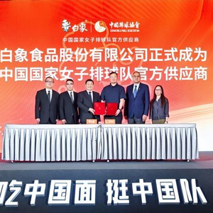 “一个是扎根品质,成为备受国民信赖的中国面品牌;一个是披荆斩棘,傲立世界体育舞台的队伍。希望白象中国面与中国女排能够相互助力、携手共赢,让全社会看到白象身为民族企业的社会责任与担当,让‘吃白象中国面,挺三大国家队’成为中国体育与民族企业的合作的新标杆。”9月19日,国家体育总局排球运动管理中心副主任于光岩在白象与女排签约现场如是表示。当天,白象正式签约中国国家女子排球队,成为官方供应商。