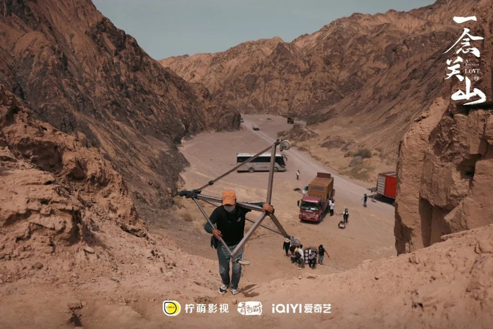 公路片的设定,让剧组不得不翻山越岭。想要武侠江湖,黄沙、大漠、红衣、斗笠,都是经典元素。横店是不够用了,他们急急地赶去了敦煌。那是2022年的关键时期,他们开拍的前两周是在无人区和沙尘暴共同度过的。