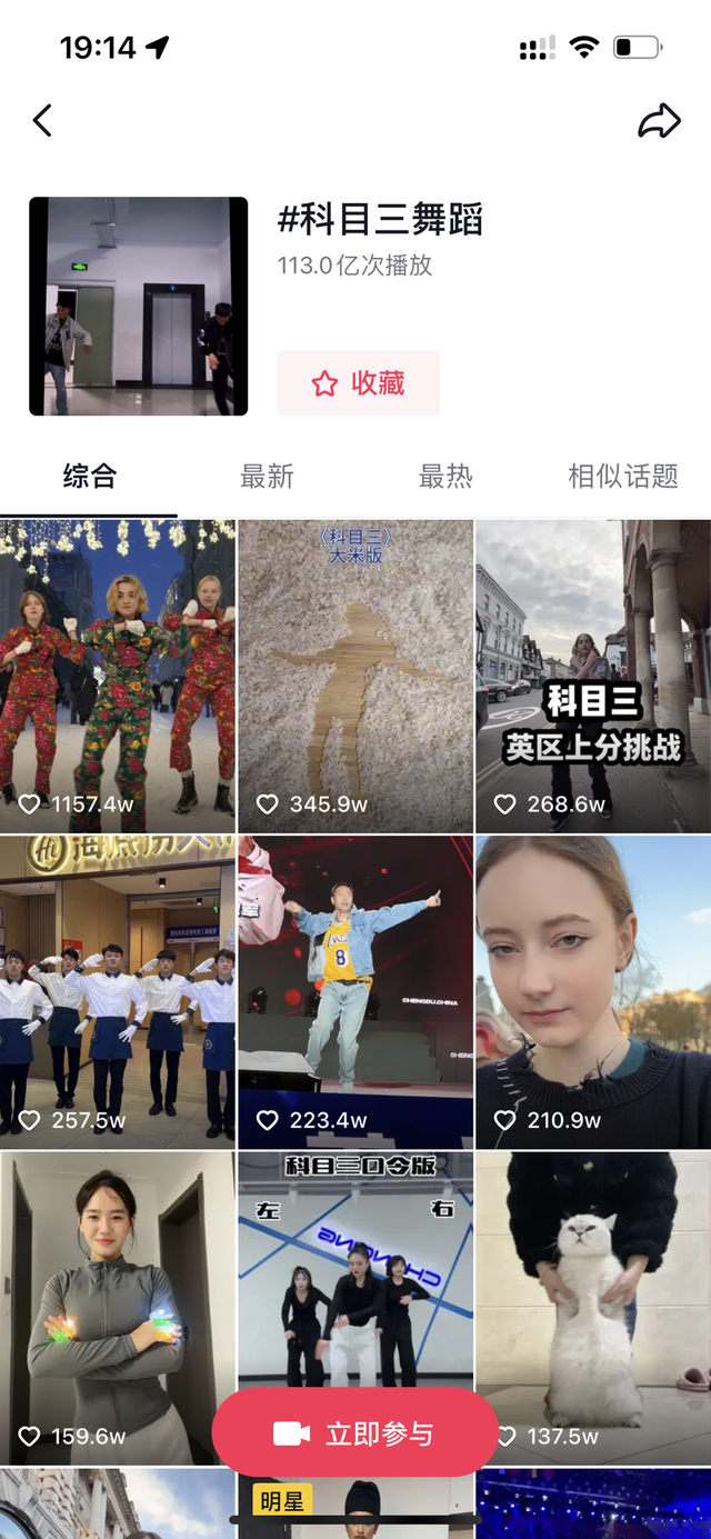 “当年,魔性的《江南style》都能风靡全球,谁都能哼上几句,‘科目三’走红也就不难理解了。”在“90后”白领米雪看来,短视频的短平快特点,让“科目三”得以迅速传播并扩大影响力,“我在短视频平台上经常刷到科目三,不知不觉间就突然火了。很多人会觉得科目三土气、动作不知所谓,但它的走红,一定契合了当下观众的某种审美情趣,是一种情绪的表达。”