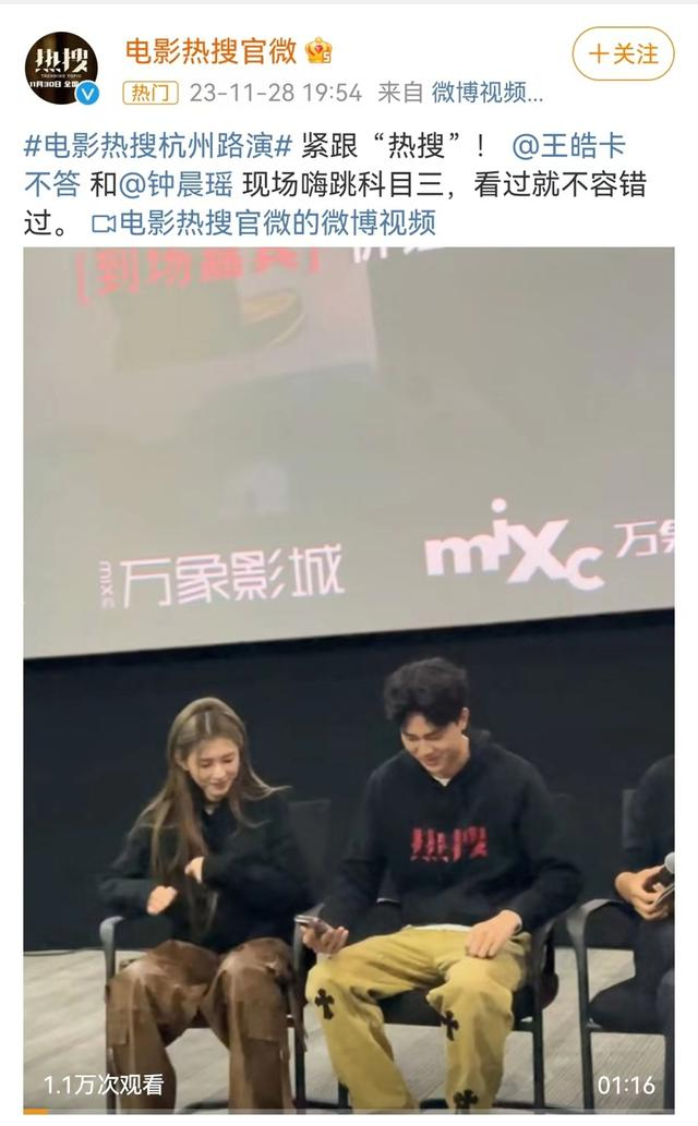 “科目三”走红后,不仅网络博主把跳“科目三”当作吸粉利器,一些影视剧路演、文艺演出也开始借跳“科目三”宣传。日前,张若昀在宣传剧集《鸣龙少年》时主动跳起“科目三”,在网络上引发不少关注。电影《热搜》杭州路演时,演员王皓和钟晨瑶被主持人提议跳一段“科目三”,尽管两人在现场跳得并不理想,被网友解读出“心理建设了好几秒”“满脸写着抗拒”,还是被电影官微作为宣传视频发在社交媒体上。