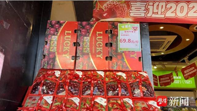 在南京河西一家精品水果店里,一排车厘子打出会员特惠价的招牌吸引顾客。但是看看标价,单J的车厘子特惠价都要卖到69.8元一斤,三J的要150多元一斤。价格为什么这么高?店员一边让记者看车厘子的新鲜程度一边解释,目前到货的车厘子都是从智利空运过来的,虽然价格高,但是捏捏它的硬度就知道,空运的车厘子比海运的新鲜很多。