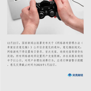 12月22日,国家新闻出版署发布关于《网络游戏管理办法(草案征求意见稿)》。