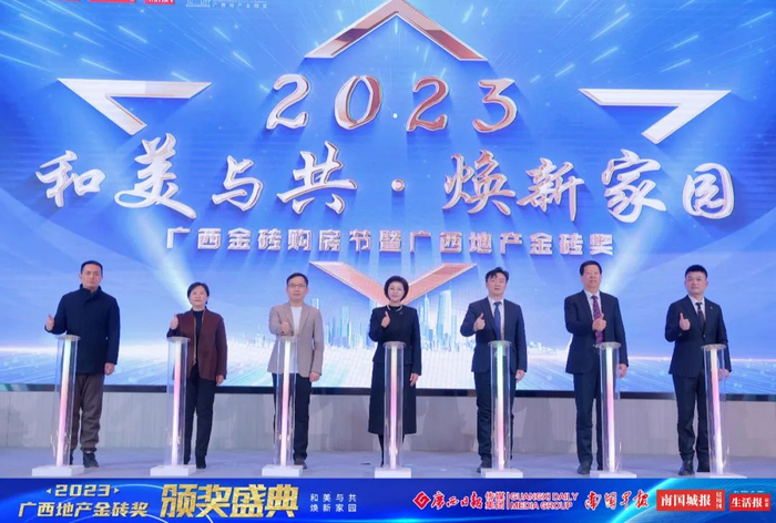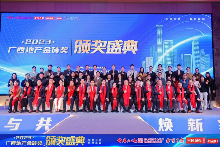 和美与共,焕新家园。12月21日,由广西日报传媒集团主办,南国早报、南国城报·居周刊、当代生活报承办的2023年广西地产金砖奖颁奖盛典在南宁希尔顿逸林酒店举行,人物奖、企业奖、楼盘奖三个类别共33项大奖名花有主。广西地产行业翘楚和业界精英齐聚一堂,共同见证金砖奖的荣耀时刻,唱响楼市好声音。
