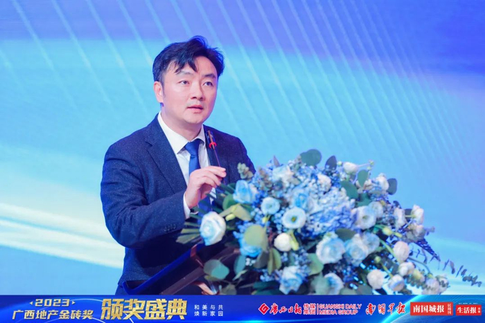 广西云数字媒体集团董事长、总编辑、总经理,南国早报总编辑文彩云在致辞中表示:今年是广西地产金砖奖举办的第十四个年头,我们十四年如一日,发挥广西日报-广西云全媒体矩阵优势,借助自治区“党端”广西云客户端、自治区“党网”广西新闻网和新型主流都市媒体南国早报及系列新媒体,用户总量近9000万、年阅读总量近300亿的“报、网、端、微、屏”全媒体传播平台,一以贯之、用情用力打造广西地产金砖奖这一行业盛典,将反映业主心声、树立行业榜样、赋能行业发展的理念进行到底,始终与广西房地产企业同频共振、和美与共,共同唱响经济光明论。