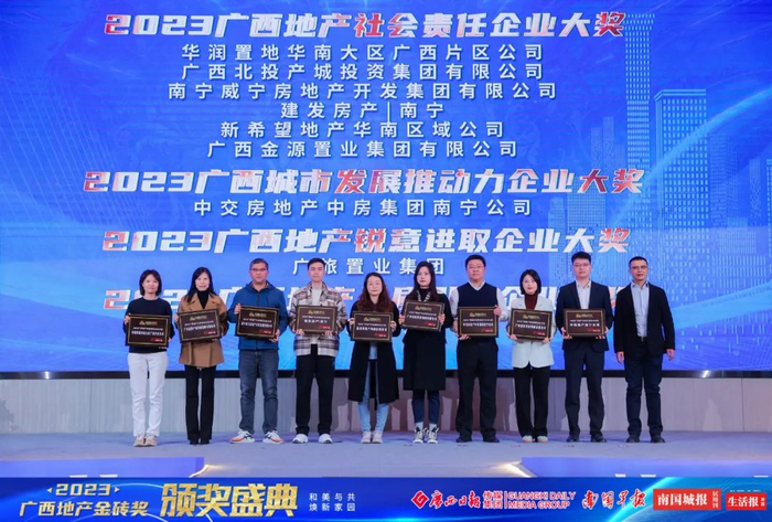 在企业类奖项中,共有25家房企获得殊荣,分别摘得“广西地产社会责任企业大奖”“广西地产交付实力企业大奖”“广西城市发展推动力企业大奖”等奖项。面对深度调整的行业周期,这些获奖企业以强烈的社会责任感,努力争做广西房地产行业的标杆,满足“人民对美好生活的向往”的朴素愿望,践行“建好房,筑好家”的企业良心。