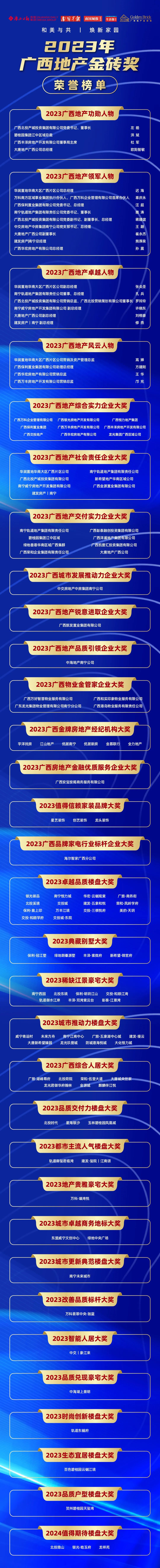 本届广西地产金砖奖共评出33项金砖大奖,这份在行业专家、学者教授、服务机构、权威媒体代表以及超百万(人次)网友见证下诞生的榜单,实至名归,含金量十足。