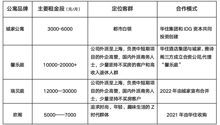整理了城家与锦江旗下主要公寓品牌的定位和模式
