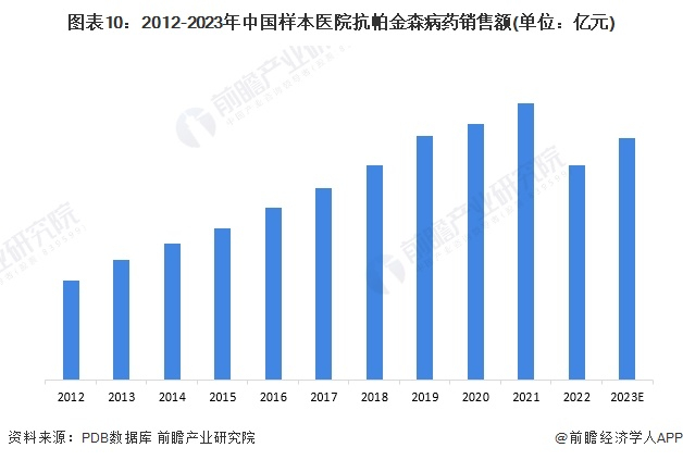 根据PDB数据库的资料显示,近年来我国样本医院抗帕金森病药销售额呈现波动上升态势,从2012年的2.5亿元上升至2021年的6.9亿元;随后下跌至2022年的5.3亿元左右。初步统计,2023年我国样本医院抗帕金森病药销售额约为6亿元左右。