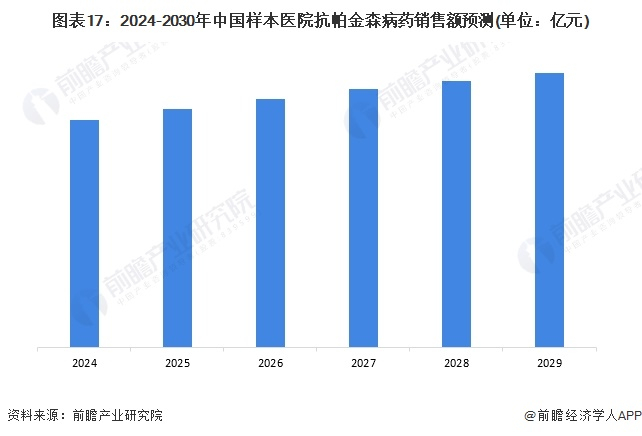 根据近年来我国样本医院抗帕金森病药销售额的增速测算,结合药品进入集采等因素,预计我国样本医院抗帕金森病药销售额将以CAGR4%左右的增速上升至2029年的7亿元左右。