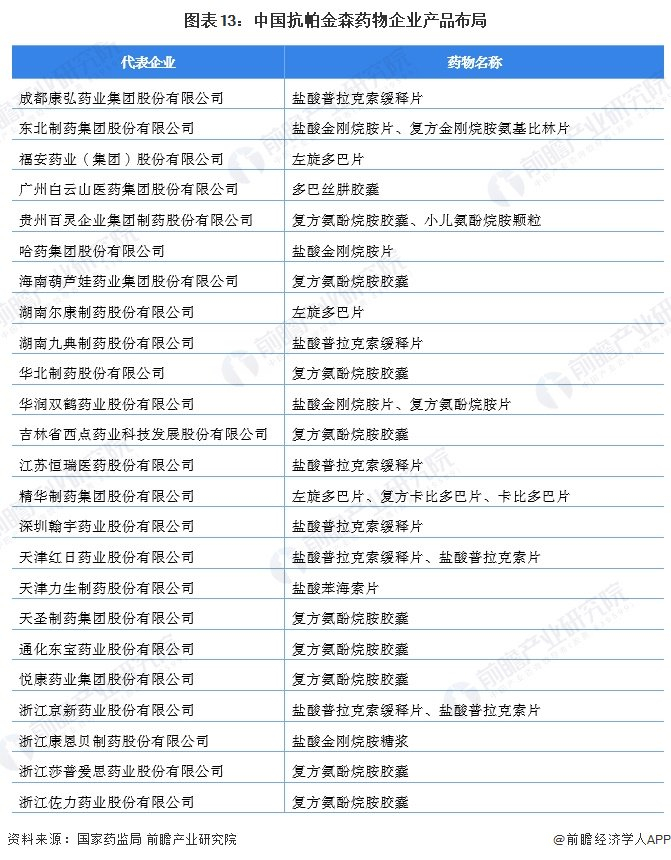 2、企业竞争:多数企业仅有一款抗帕金森药物