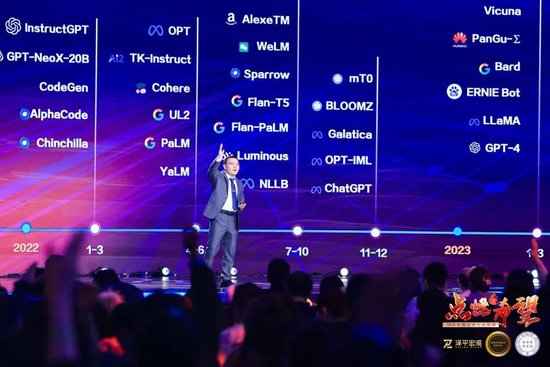 谁先入局、谁先打破视野盲区,谁就有望占得先机。六年前,AI第一次刷新我们的认知还是因为alphago,在围棋这项号称高智商的棋类运动上击败人类冠军棋手。就在那一年前,OpenAI才刚刚创立。作为一家初创公司它今天的估值已经达到多少了?大家可以猜猜是多少,近900亿美元。仅用了不到七年的时间,OpenAI在谷歌之前发布了大模型ChatGPT,曾经的一家初创公司将过去的互联网巨头甩在身后,这就是抢占先机的力量。