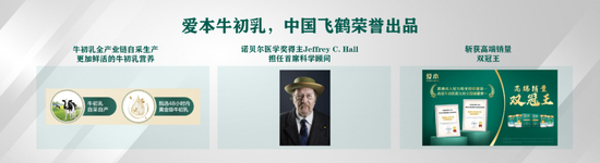 北纬47度的黑土地黄金奶源带孕育出了鲜活的牛初乳,爱本已经实现了全产业链自主生产,与多家权威机构和2017年诺贝尔医学奖获得者Jeffrey进行合作,凭借硬核的产品实力和科研投入,爱本获得了“高端牛初乳配方粉”和“高端成人配方粉”销量双冠王的称号,赢得了市场认可和消费者的青睐。