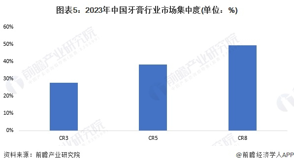 市场集中度方面,中国牙膏行业集中度一般,目前CR3为27.7%,CR5为38.3%,CR8为49.4%左右。