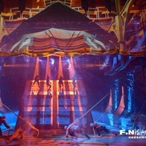演出中这样的特色物件不少。除了呈现船政历史外,《最忆船政》还融入八将舞、妈祖文化、哪吒鼓等福建非遗文化以及福州方言、福州地名、传统服饰、闽菜文化等。