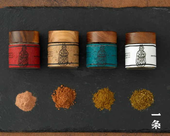 大礼盒包含4瓶不同香型的香粉,以及皂石圆球香器。