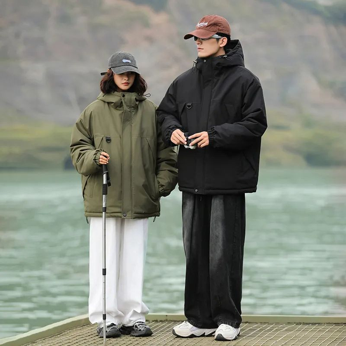 SENLINJEEPSD这款版型干净利落不拖沓,有点偏向于户外冲锋衣的样式,在棉服里比较少见,穿的人有一种很清爽的利落感。