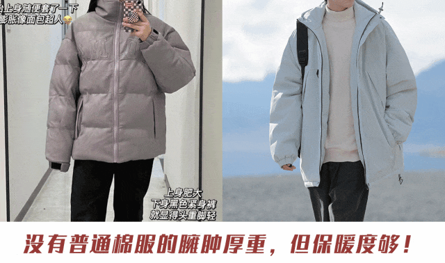 左:SENLINJEEPSD棉服,右:普通款羽绒服
