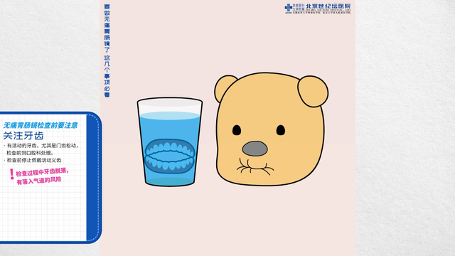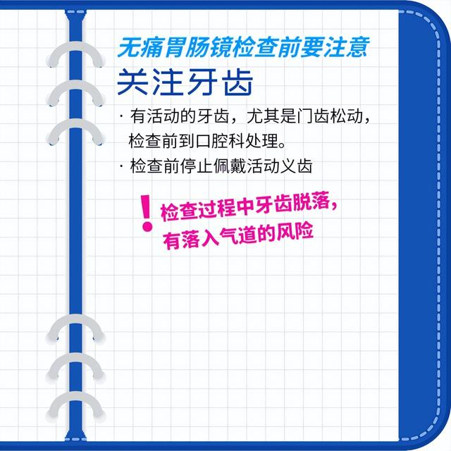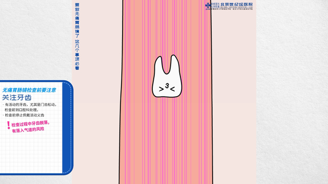 如果您有活动的牙齿,尤其是门齿的松动,最好在检查前到口腔科处理。以免在检查过程中出现牙齿脱落,有落入气道的风险。