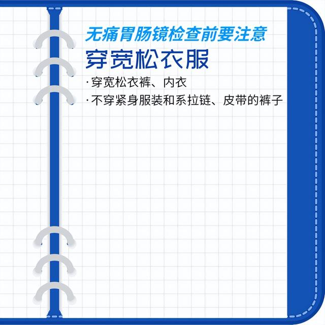建议当日穿宽松衣裤、内衣,不推荐穿紧身服装和系拉链、皮带的裤子。做肠镜可以选择一次性内镜裤子,便于保护隐私,避免弄脏衣服。