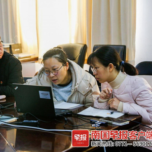▲广西地震局的工作人员正在地震震情分析室里分析相关数据。记者 游拥军 摄