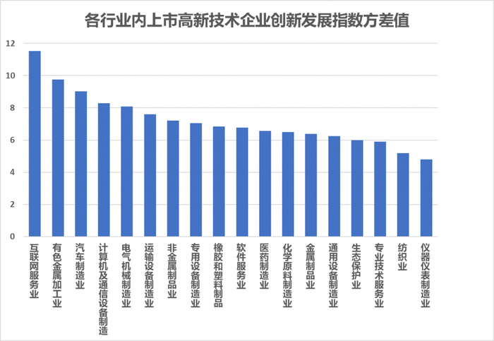各行业内企业创新发展分布差异较大,有待进一步均衡发展
