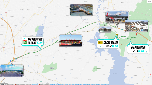 到此处可从长春东收费站驶入高速公路,经珲乌高速公路(G12),行经莲花山收费站、龙嘉机场收费站、石头口门服务区(可加油、就餐),在九台收费站驶出高速公路后,再经行至智城大路、港城大街、001省道约6.6公里即可到达。
