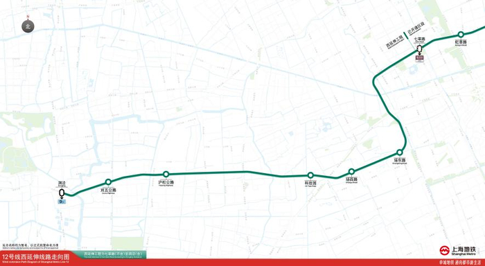 12号线西延伸自12号线七莘路站(不含)向西延伸,途经松江区和闵行区,共6座车站,线路全长约17.27公里。目前沪松公路站、刘五公路站土建施工,洞泾站、科技园站、场七风井一阶段翻交完成。