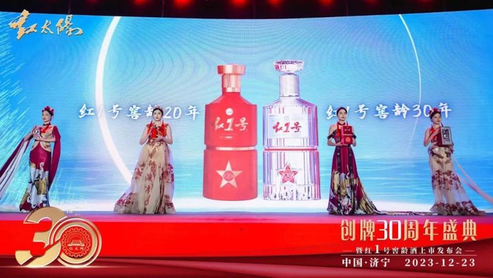 12月23日,红太阳创牌30周年盛典、红1号窖龄酒上市发布会、首届文化艺术节在济宁隆重举办,来自中国酒业协会、中国食品工业协会、中国食品发酵工业研究院、贵州大学、天津科技大学、山东省糖酒副食品商业协会、山东省白酒协会,山东省、济宁市、嘉祥县有关部门领导与退休老领导,国家级酿酒大师、白酒大师与国内知名酒企有关负责人,以及供应商、渠道商、企业家、媒体、消费者及员工代表等3000余名嘉宾出席活动。